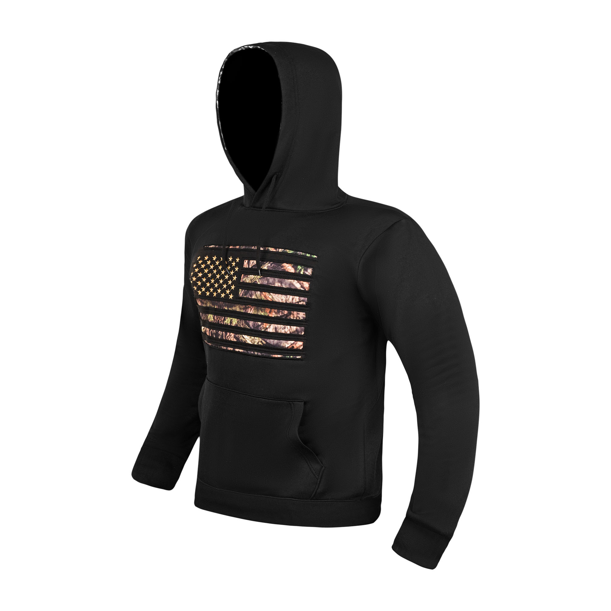 Stay warm and stylish with this rugged yet comfortable Men's Black Pullover Hoodie featuring a bold American flag design with a unique camouflage pattern. Made from a durable cotton-polyester blend, this hoodie provides both warmth and breathability, making it ideal for casual wear, outdoor adventures, or lounging. The spacious kangaroo pocket and adjustable drawstring hood add practicality and comfort, while ribbed cuffs and hem ensure a snug fit. Show off your patriotic spirit with a modern, tactical twist