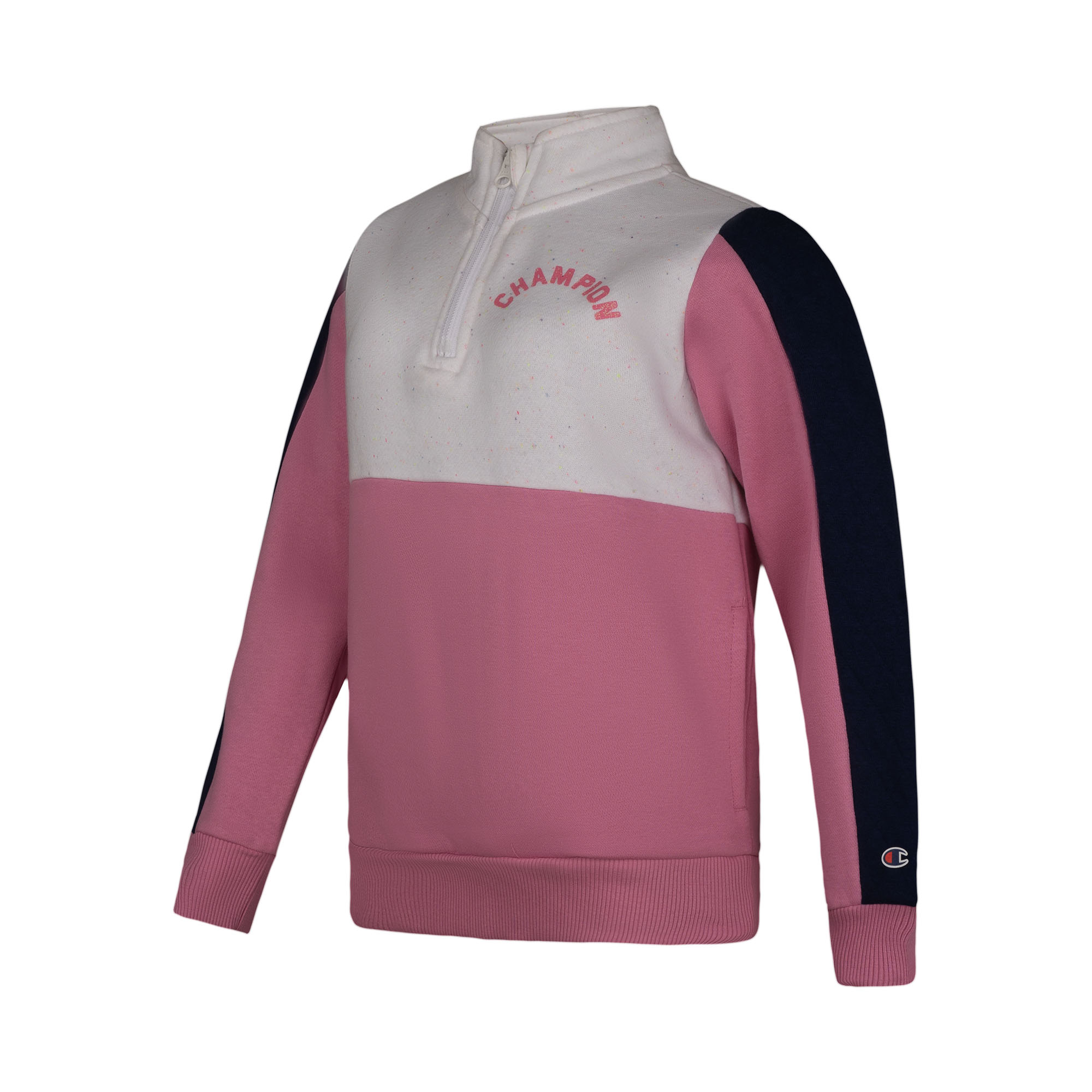 • Design: Colorblock with speckled white panel and Champion logo print