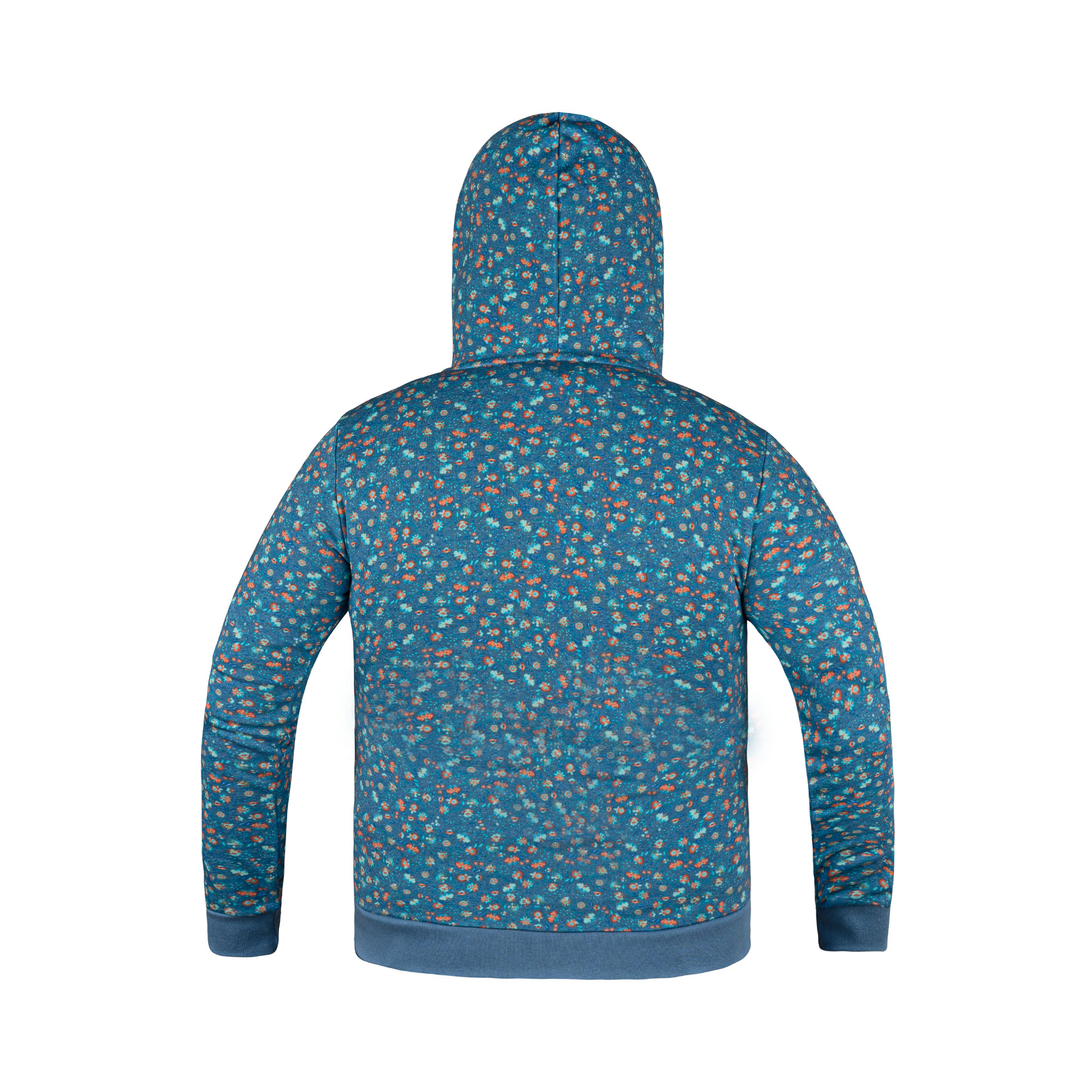 Add a pop of color and charm to your casual wardrobe with this Women's Blue Floral Zip-Up Hoodie. Featuring an all-over delicate floral print on a vibrant blue background, this hoodie is both fun and functional. Made from a soft, lightweight fabric blend, it includes a full front zipper, adjustable drawstring hood, and ribbed cuffs and hem for a secure fit. Perfect for layering on cool days or cozying up in style